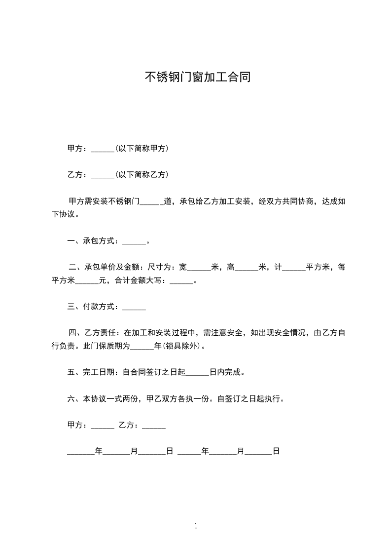 第四条、制作加工材料:甲方只负责提供主材料:方钢、不锈钢扣板、玻璃、地弹簧、门把手等;其余材料,如:焊条、切割片等一切辅料自行承担。