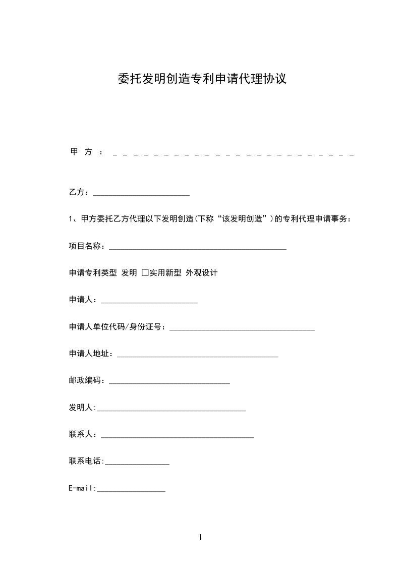 1、甲方委托乙方代理以下发明创造的专利代理申请事务: