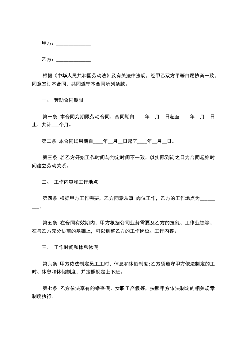 第一条 本合同为期限劳动合同,合同期自____年__月__日起至____年__月__日止,共计___个月。