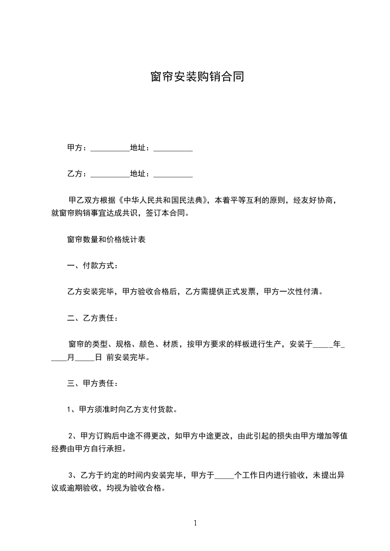 甲乙双方根据《民法典》,本着平等互利的原则,经友好协商,就窗帘购销事宜达成共识,签订本合同。