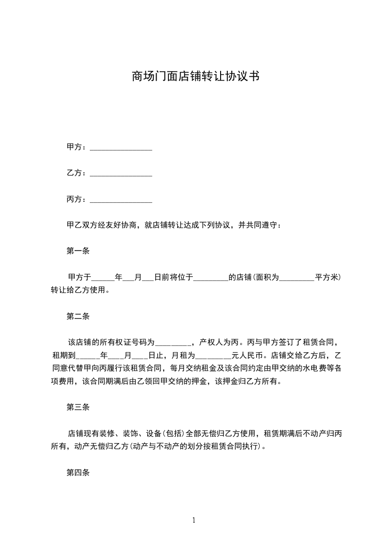 甲方于______年___月___日前将位于_________的店铺(面积为_________平方米)转让给乙方使用。