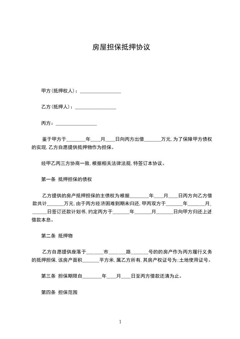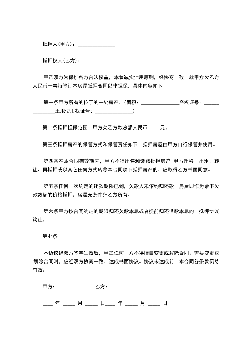 甲乙双方为保护各方合法权益,本着诚实信用原则,经协商一致,就甲方欠乙方人民币一事特签订本房屋抵押合同以作担保,具体内容如下: