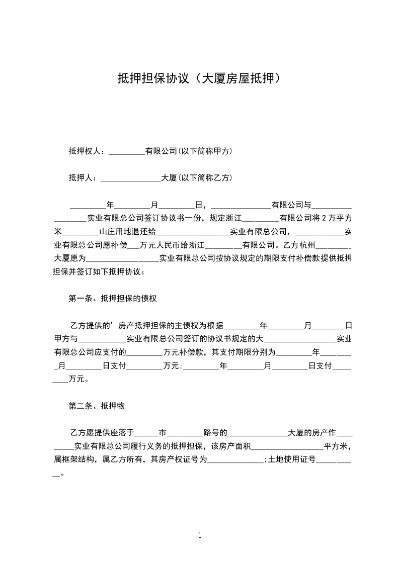 第一条甲方所有的位于的一处房产。(面积:_______________产权证号:_______________土地使用权证号:_______________)