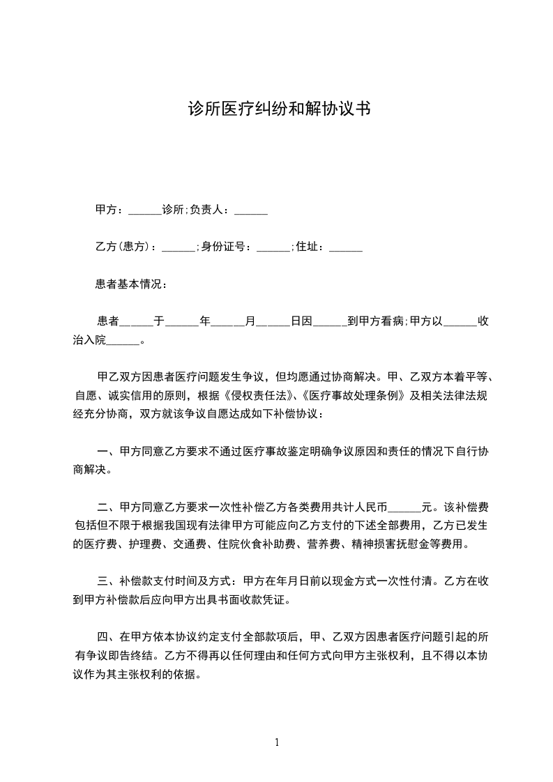 乙方(患方):______;身份证号:______;住址:______