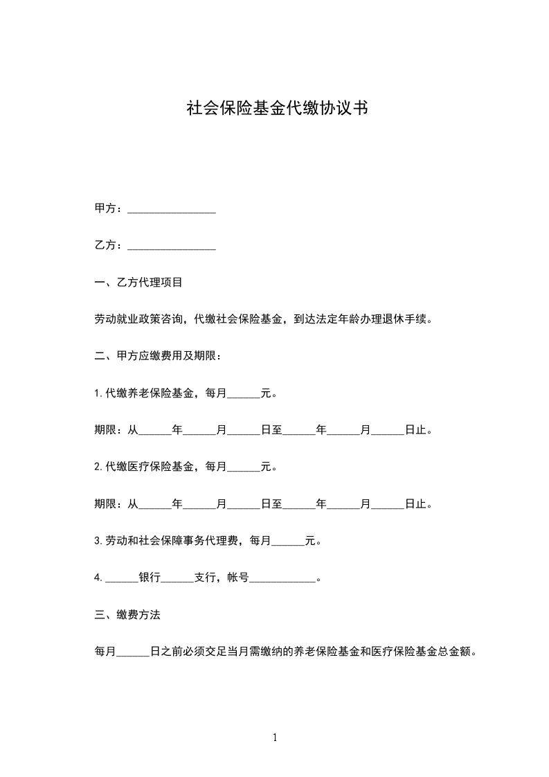 1.代缴养老保险基金,每月______元。