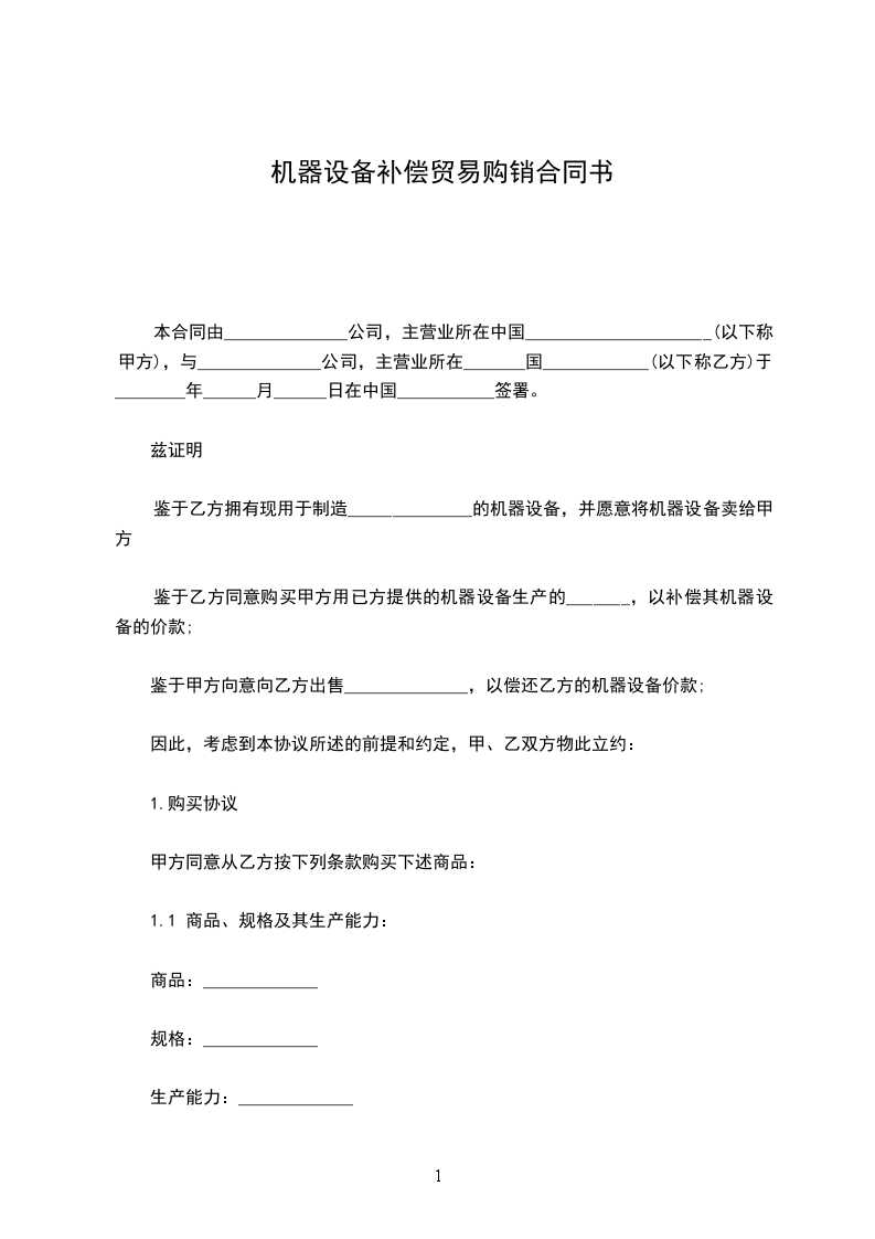 鉴于乙方同意购买甲方用已方提供的机器设备生产的_______,以补偿其机器设备的价款;