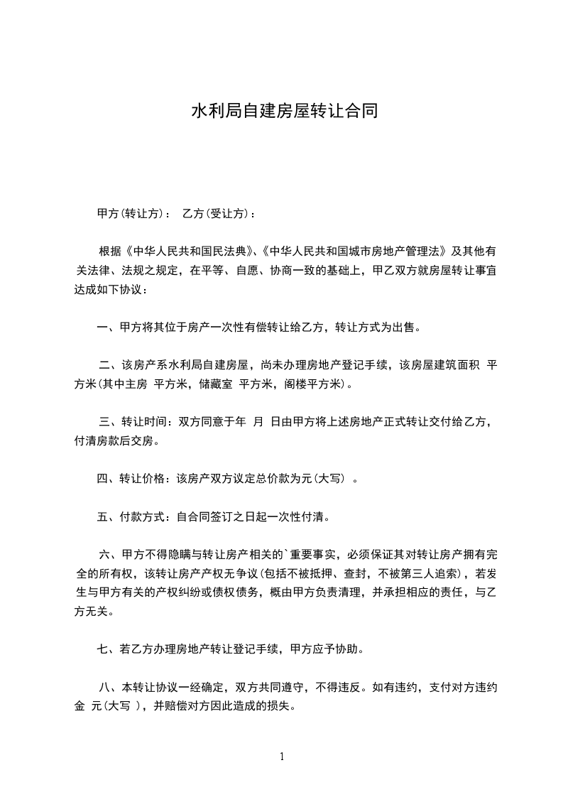 根据《中华人民共和国民法典》、《中华人民共和国城市房地产管理法》及其他有关法律、法规之规定,在平等、自愿、协商一致的基础上,甲乙双方就房屋转让事宜达成如下协议: