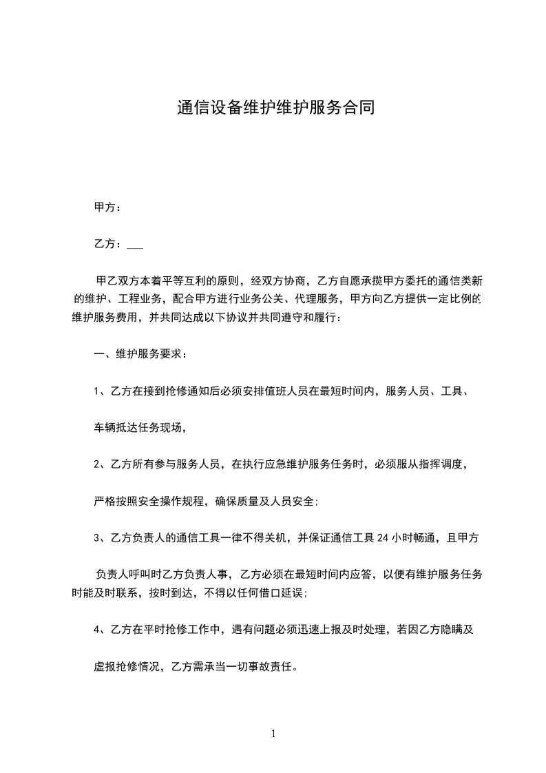 甲乙双方本着平等互利的原则,经双方协商,乙方自愿承揽甲方委托的通信类新的维护、工程业务,配合甲方进行业务公关、代理服务,甲方向乙方提供一定比例的维护服务费用,并共同达成以下协议并共同遵守和履行: