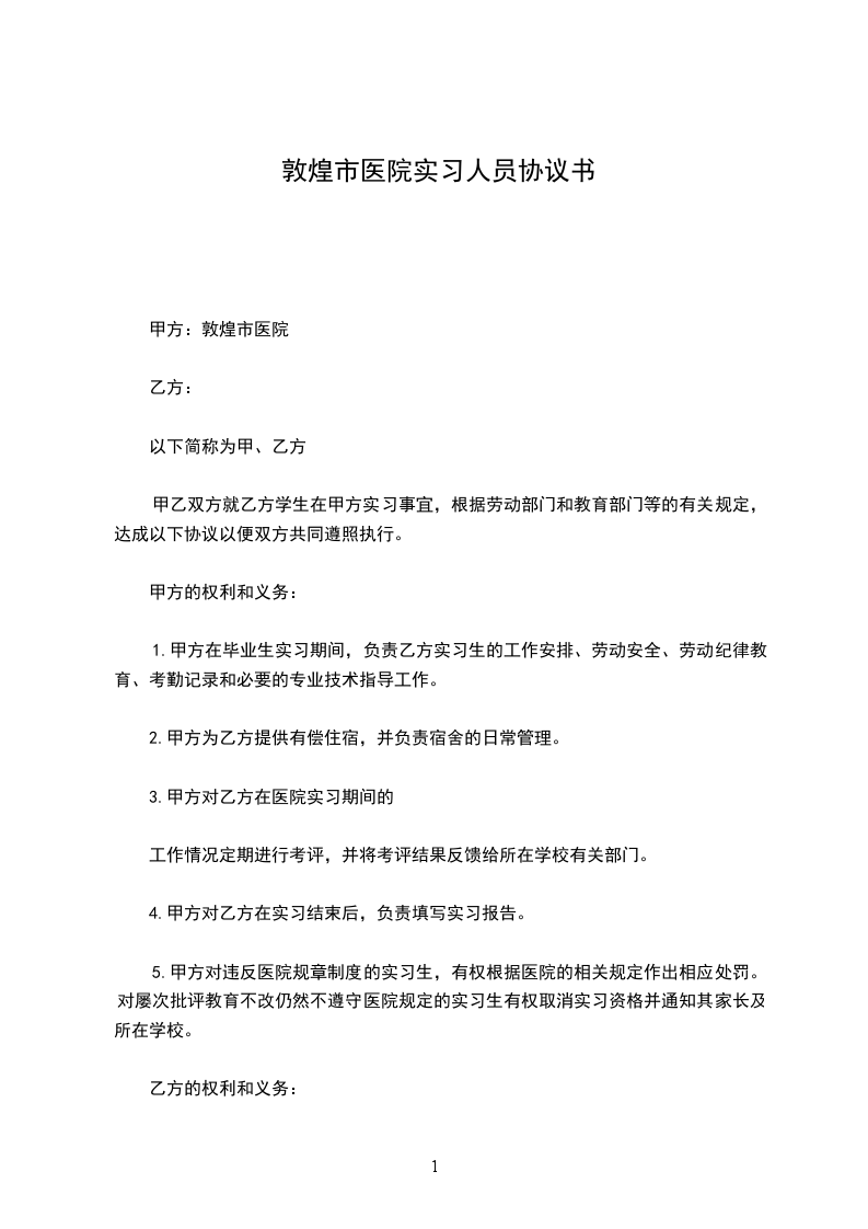 1.乙方必须遵守医院的规章制度,接受医院的实习安排。