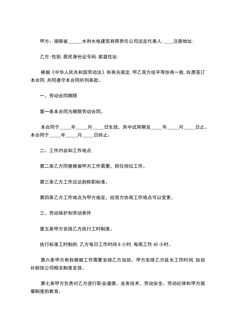 甲方:湖南省______水利水电建筑有限责任公司法定代表人:____注册地址: