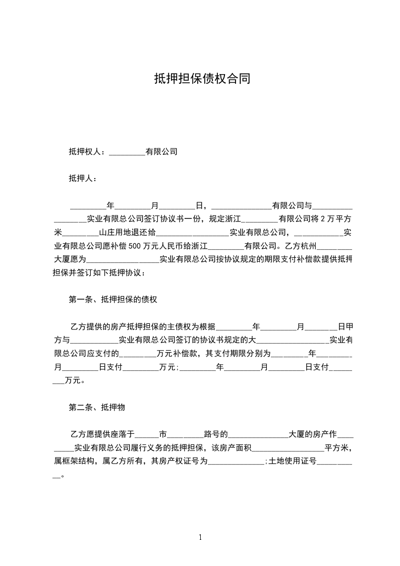 乙方愿提供座落于______市_________路号的_______________大厦的房产作_________实业有限总公司履行义务的抵押担保,该房产面积__________________平方米,属框架结构,属乙方所有,其房产权证号为______________;土地使用证号___________。