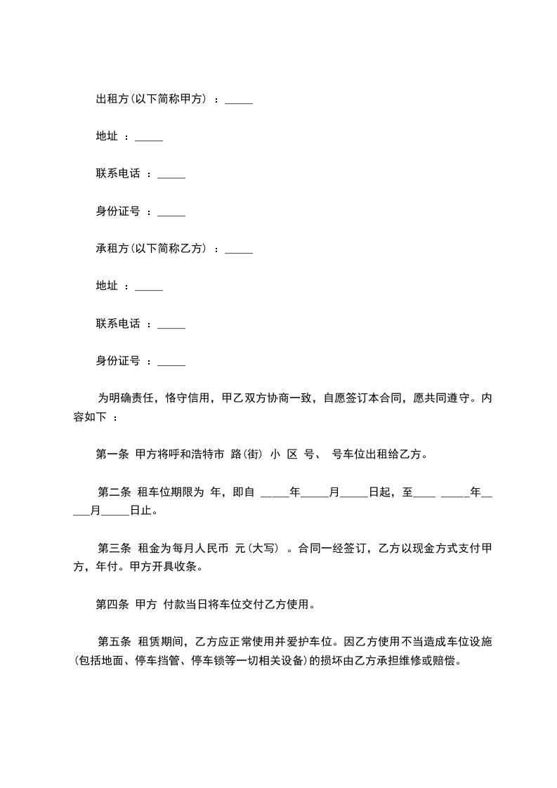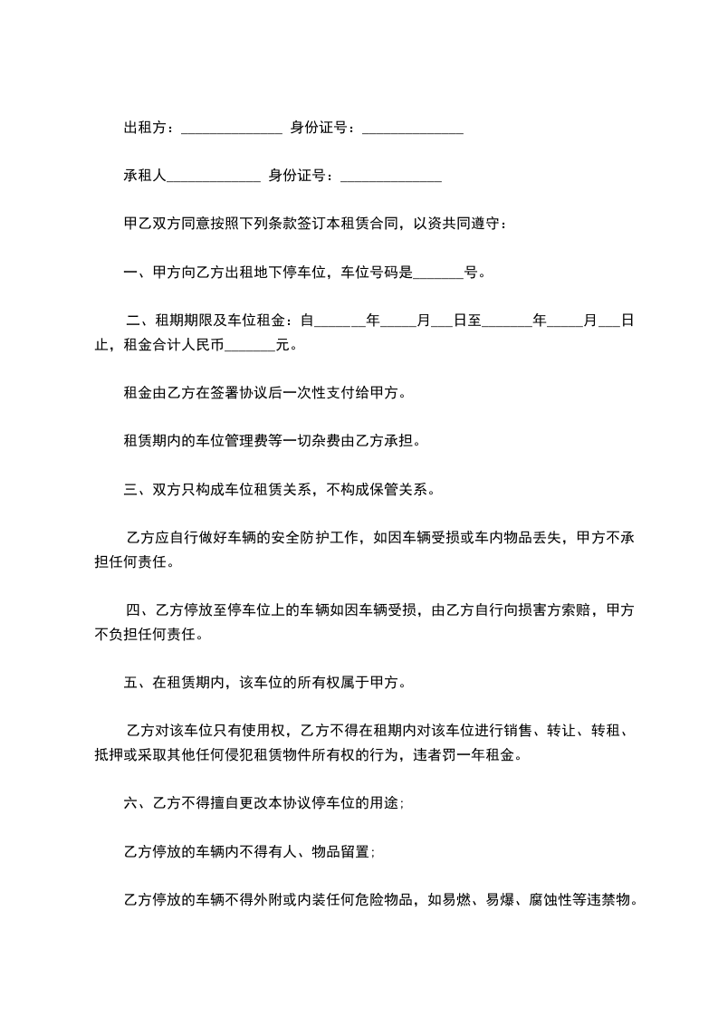 1、不得将停车位转租或转借给他人;