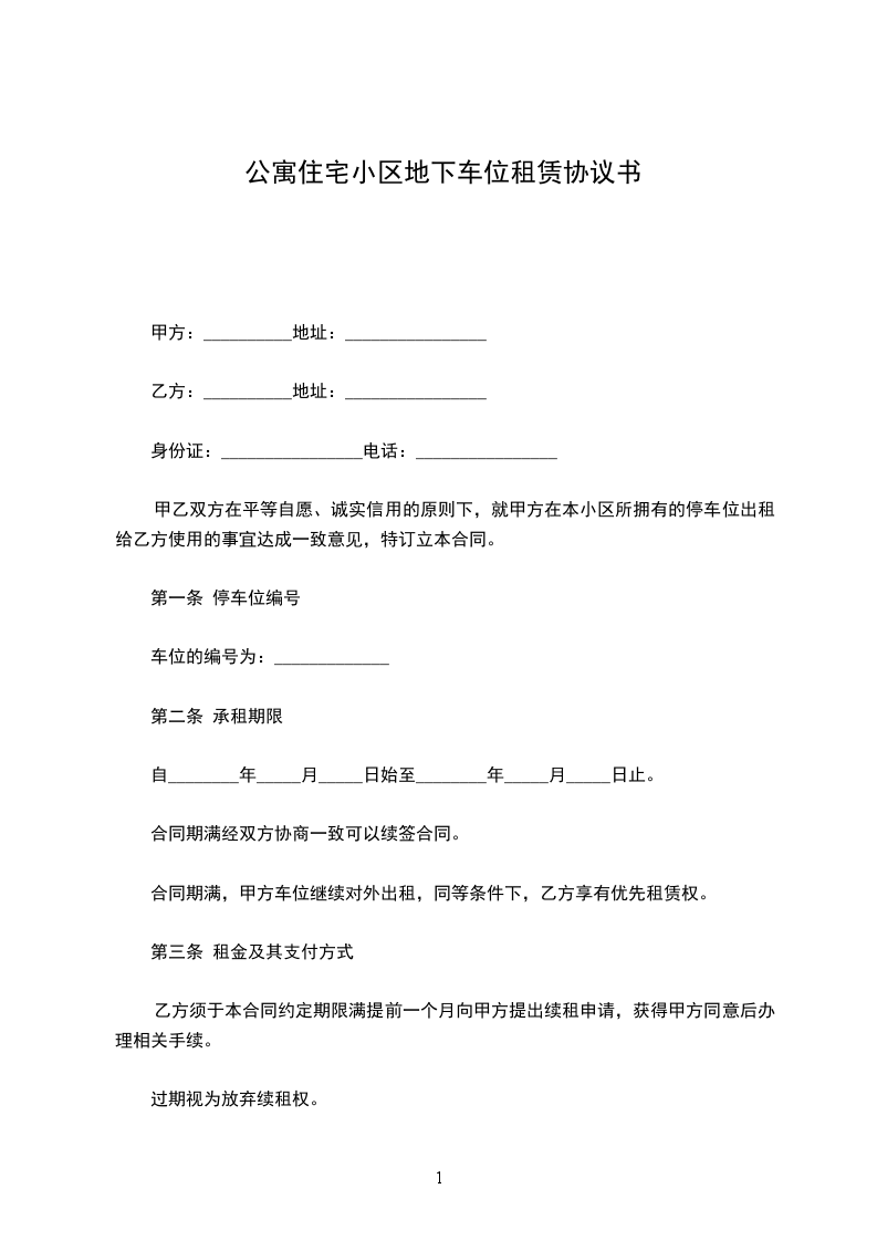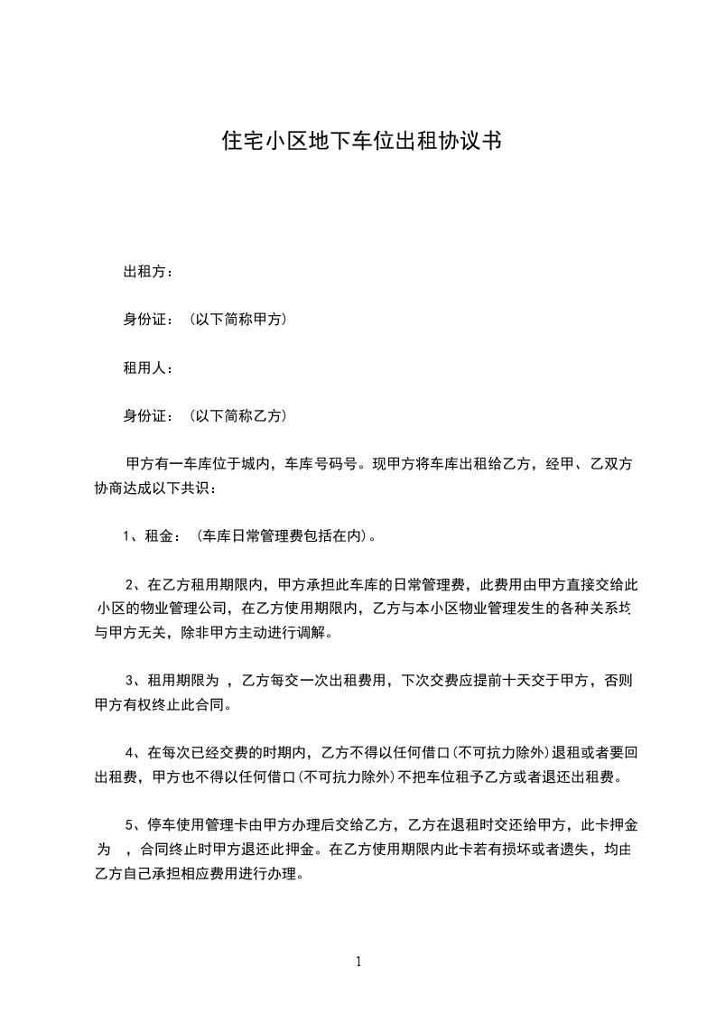 1、甲方向乙方提供空停车位;