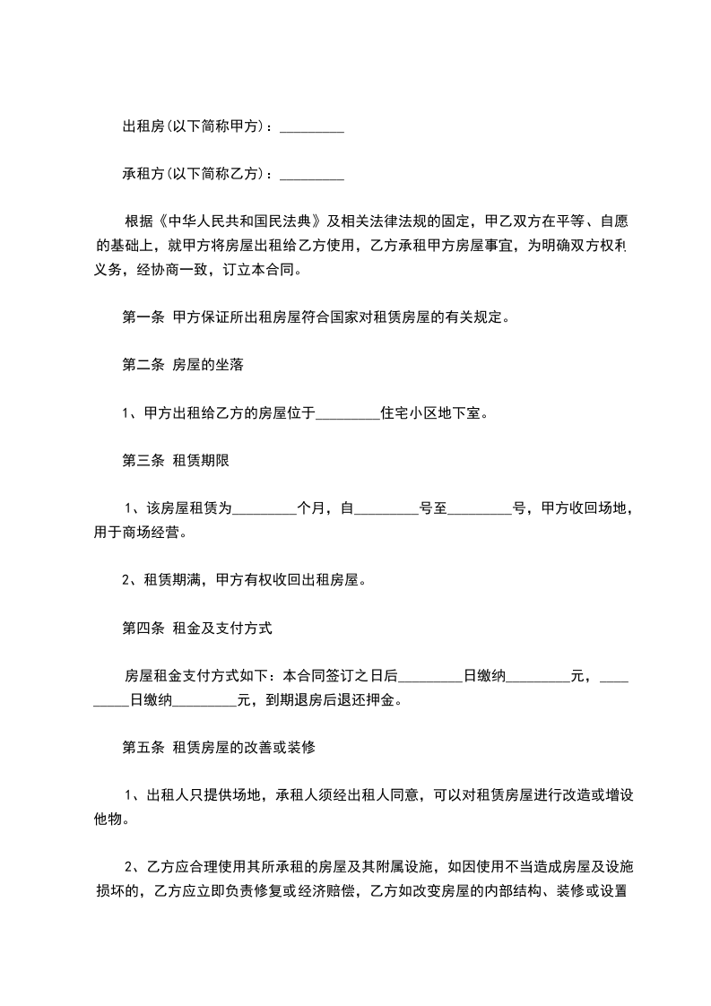 1、本合同约定期间内,甲乙双方不得擅自解除合同,擅自解除合同的一方视为违约,违约方应支付对方_____个月租金作为违约金。