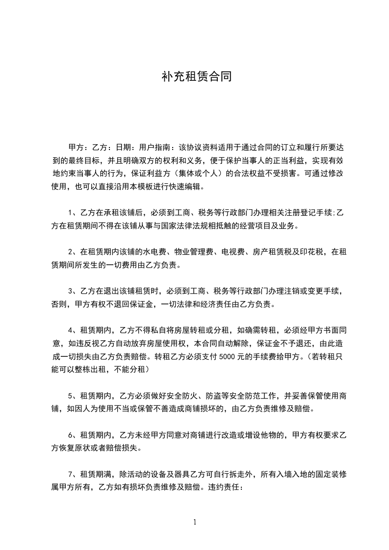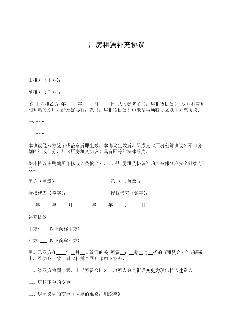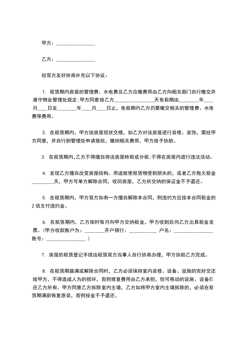 经双方友好协商补充以下协议: