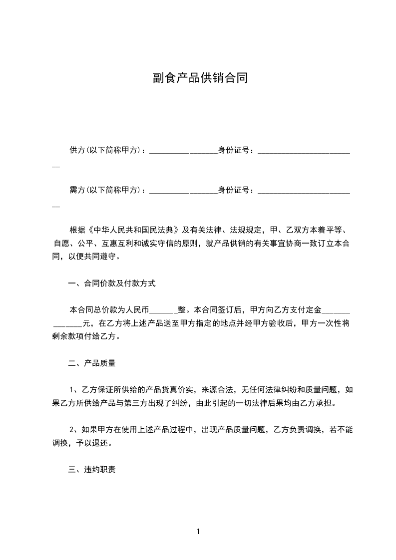 根据《中华人民共和国民法典》及有关法律、法规规定,甲、乙双方本着平等、自愿、公平、互惠互利和诚实守信的原则,就产品供销的有关事宜协商一致订立本合同,以便共同遵守。