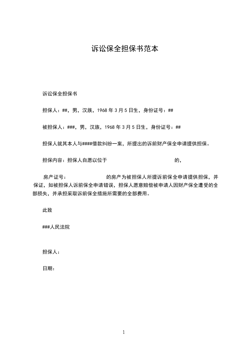 担保人:##,男,汉族,1968年3月5日生,身份证号:##