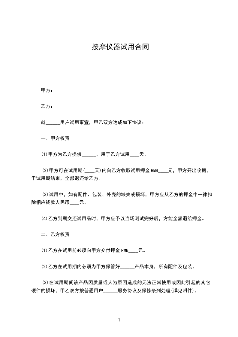 (1)乙方在试用前必须向甲方交付押金RMB____元。