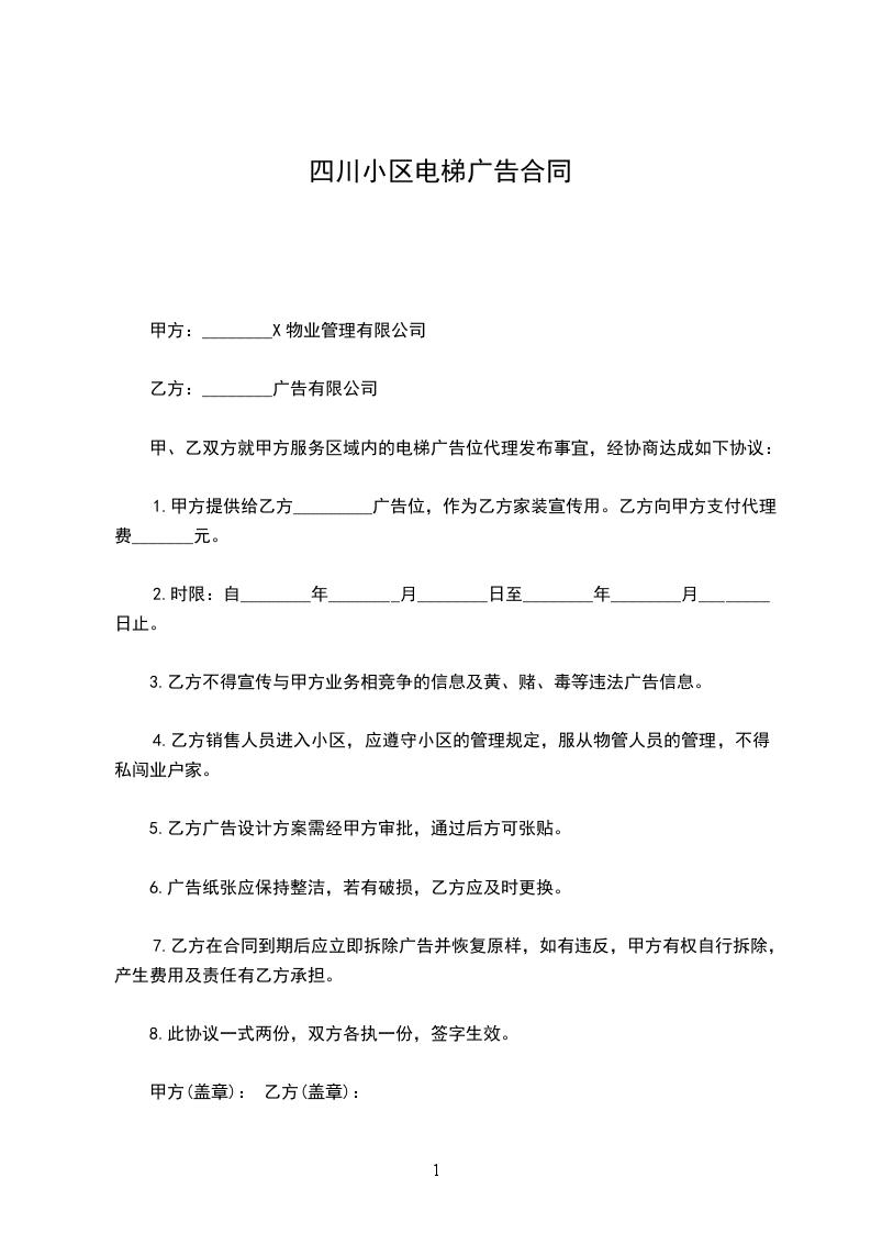 甲、乙双方就甲方服务区域内的电梯广告位代理发布事宜,经协商达成如下协议: