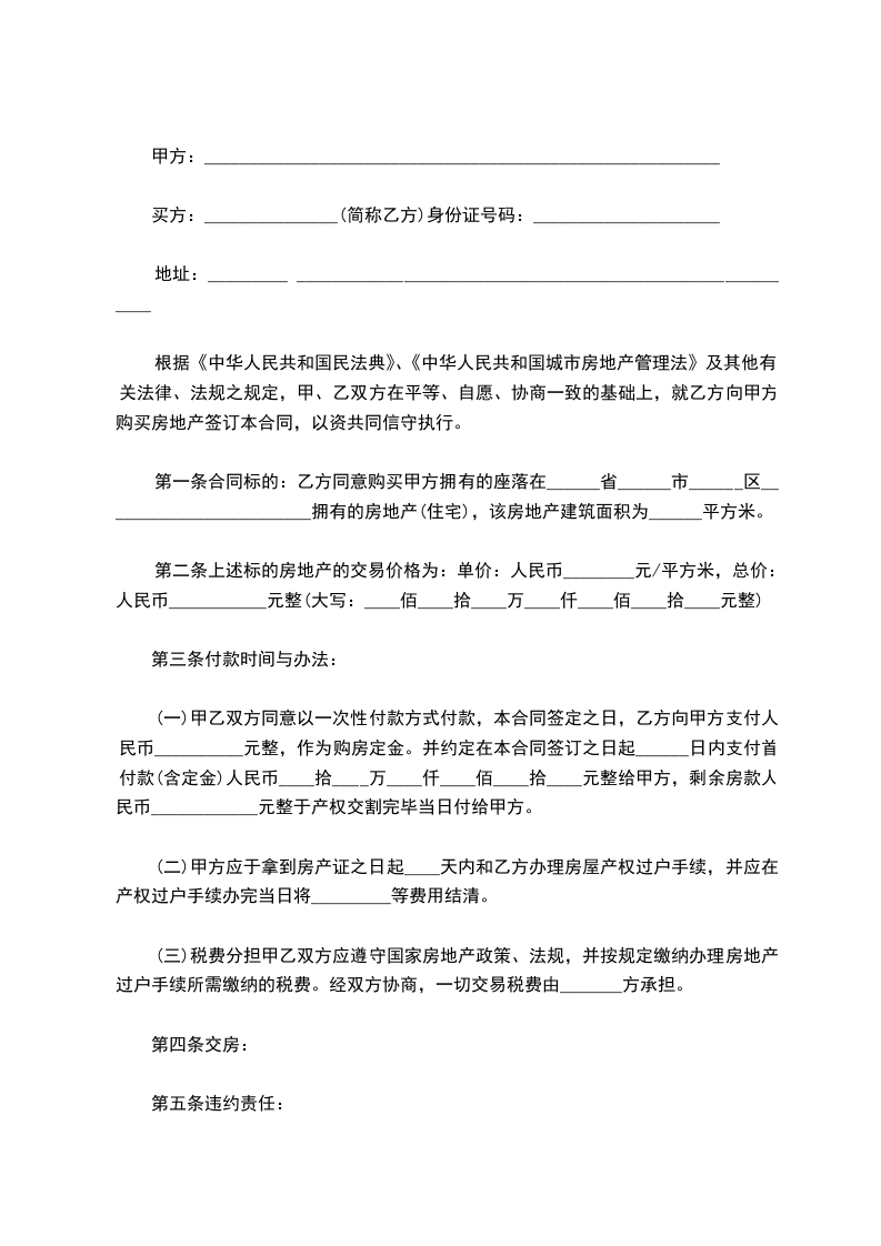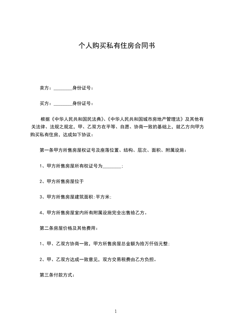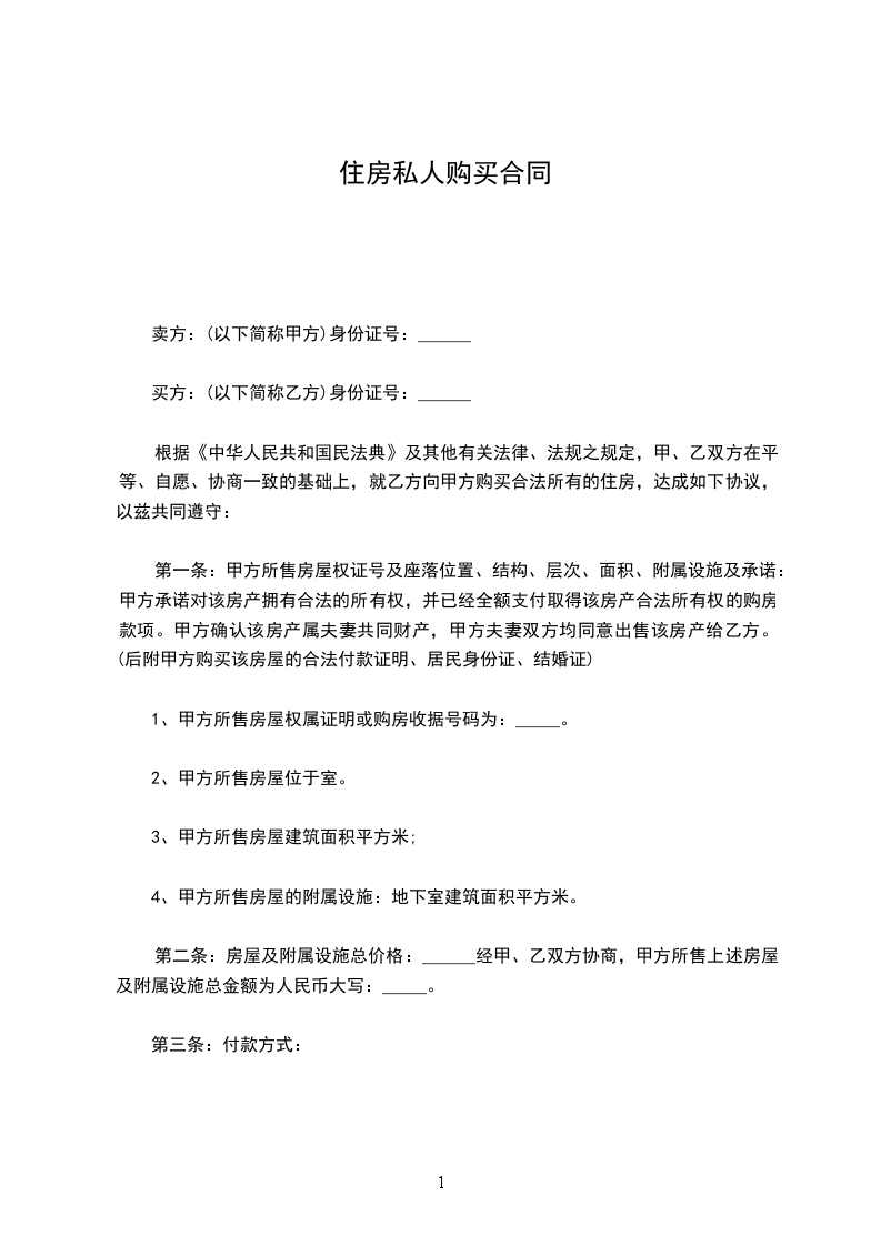 根据《中华人民共和国民法典》、《中华人民共和国城市房地产管理法》及其他有关法律、法规之规定,甲、乙双方在平等、自愿、协商一致的基础上,就乙方向甲方购买私有住房,达成如下协议: