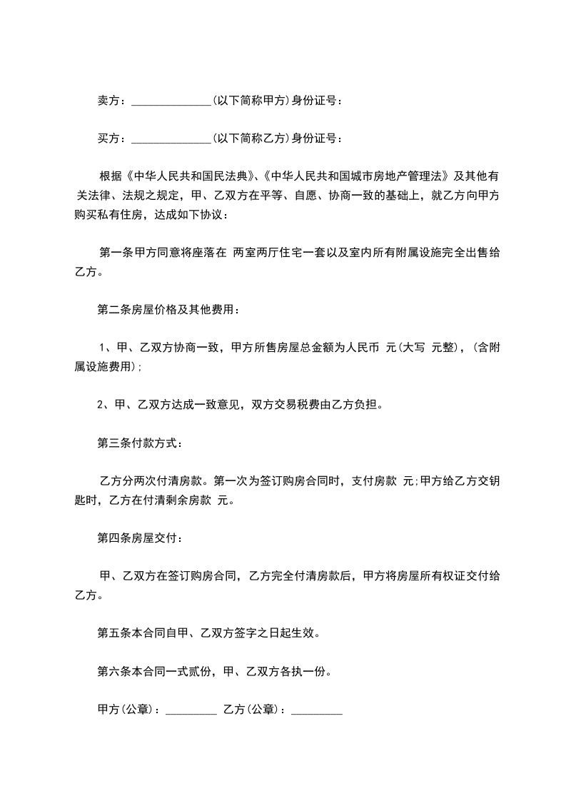 2、甲方于本协议签订之日起 日内,将该房屋交付乙方。同时,乙方向甲方一次性支付房款________元(大写:人民币________元整);