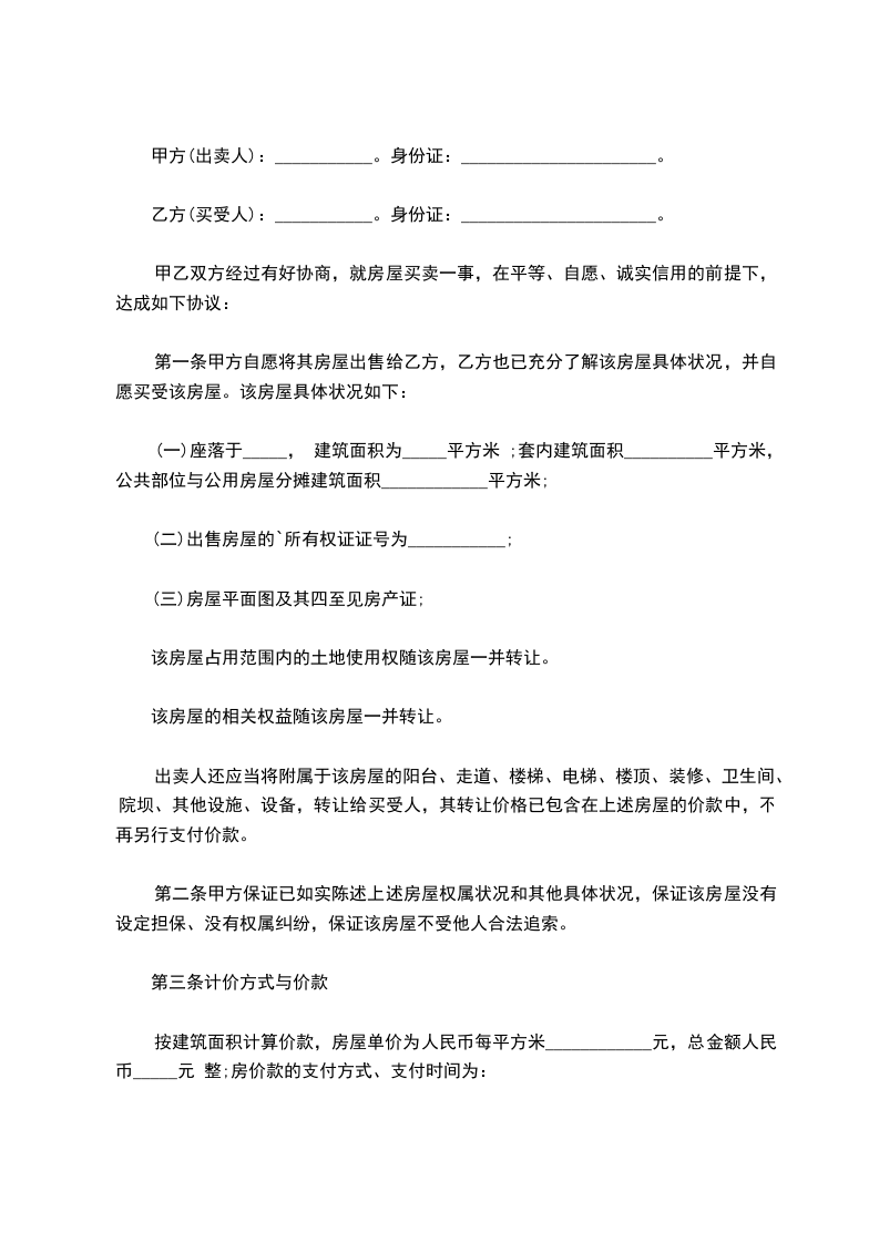 1、甲方自愿将属于自己的位于________省________市________区________花园的 号楼 单元 室的住房(阁楼)出售给乙方;