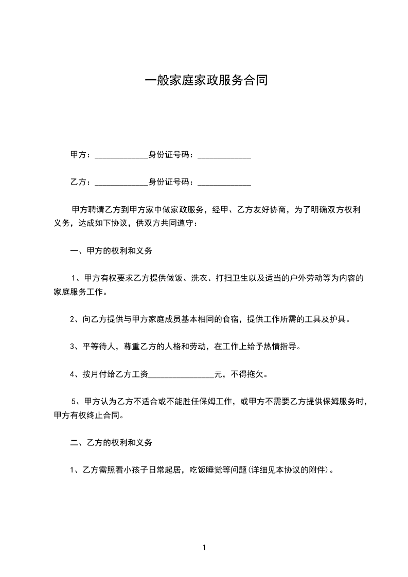 1、甲方有权要求乙方提供做饭、洗衣、打扫卫生以及适当的户外劳动等为内容的家庭服务工作。