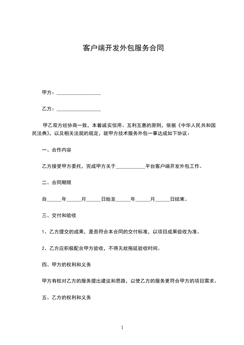 乙方接受甲方委托,完成甲方关于____________平台客户端开发外包工作。