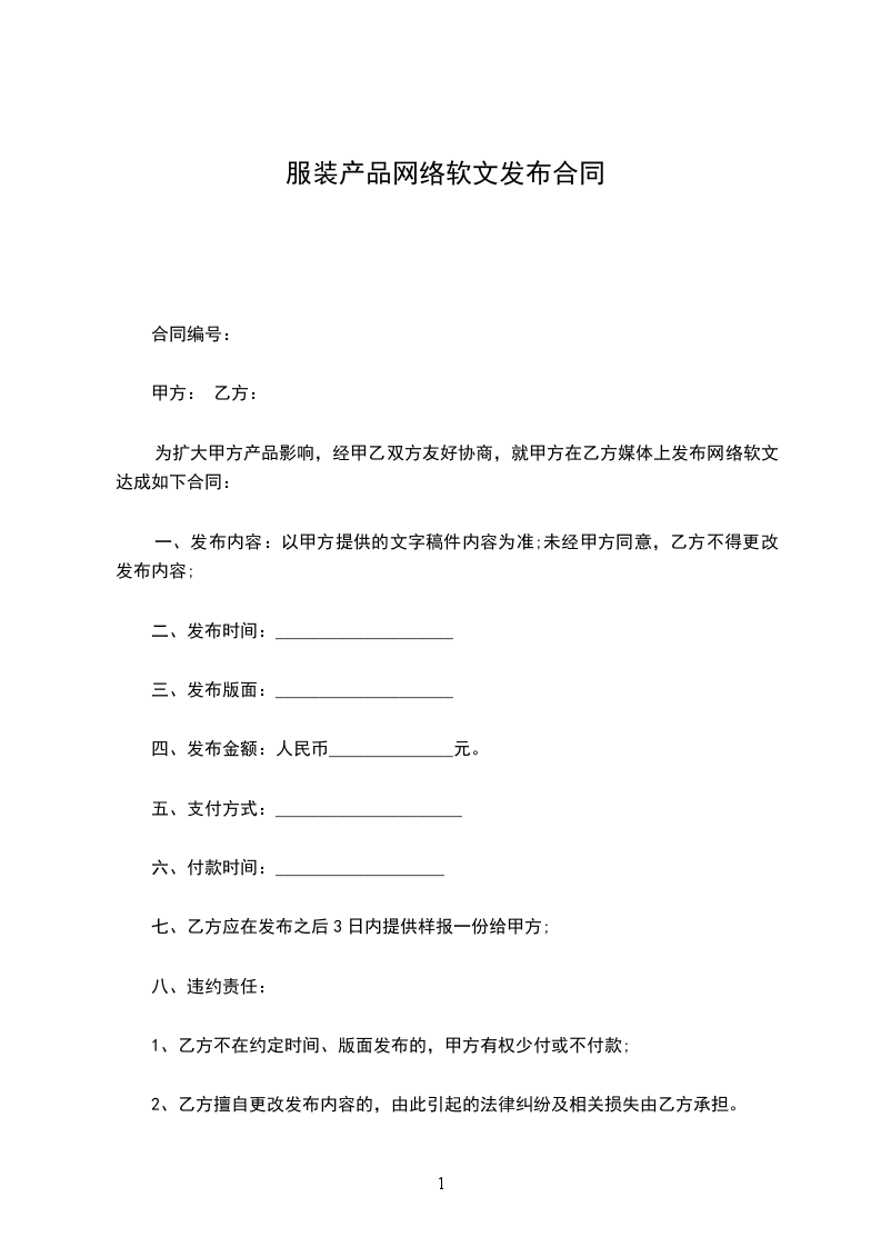 为扩大甲方产品影响,经甲乙双方友好协商,就甲方在乙方媒体上发布网络软文达成如下合同: