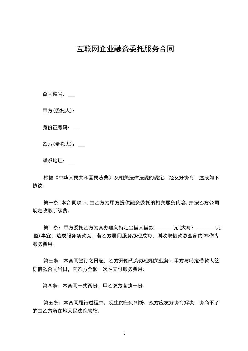 第一条:本合同项下,由乙方为甲方提供融资委托的相关服务内容,并按乙方公司规定收取手续费。