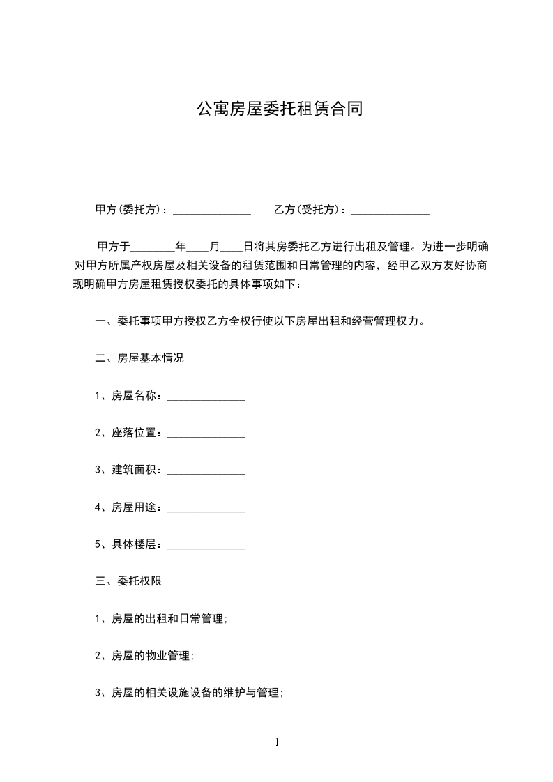 一、委托事项甲方授权乙方全权行使以下房屋出租和经营管理权力。