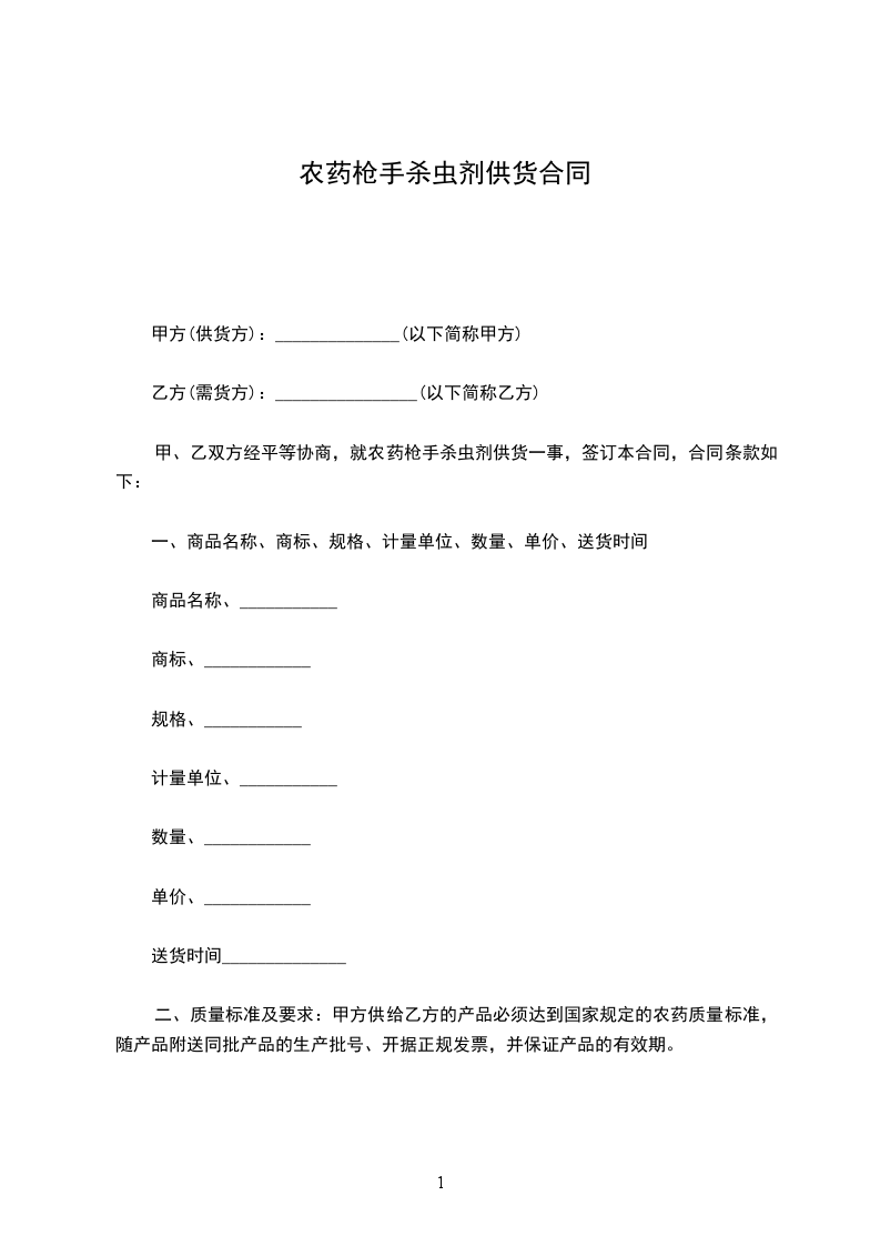 甲、乙双方经平等协商,就农药供货一事,签订本合同,合同条款如下: