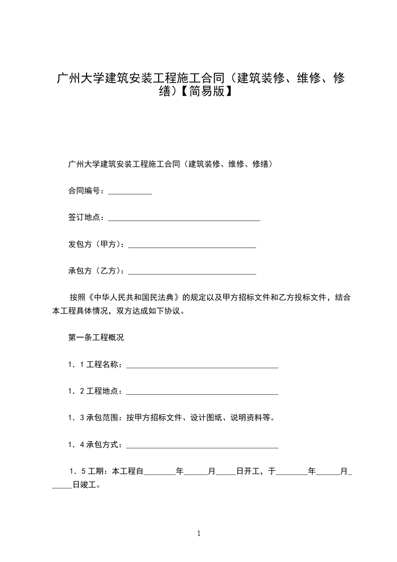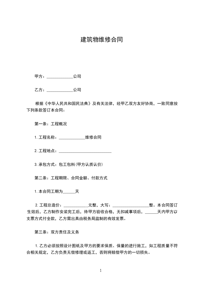 一、修缮修理项目、数量、金额、交货期限