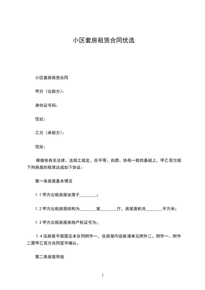一、租赁期限为:租赁时间为一年,即_________年____月____日至_________年____月____日。