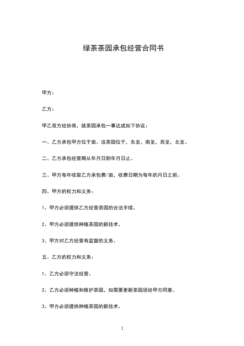 一、乙方承包甲方位于亩。该茶园位于,东至,南至,西至,北至。