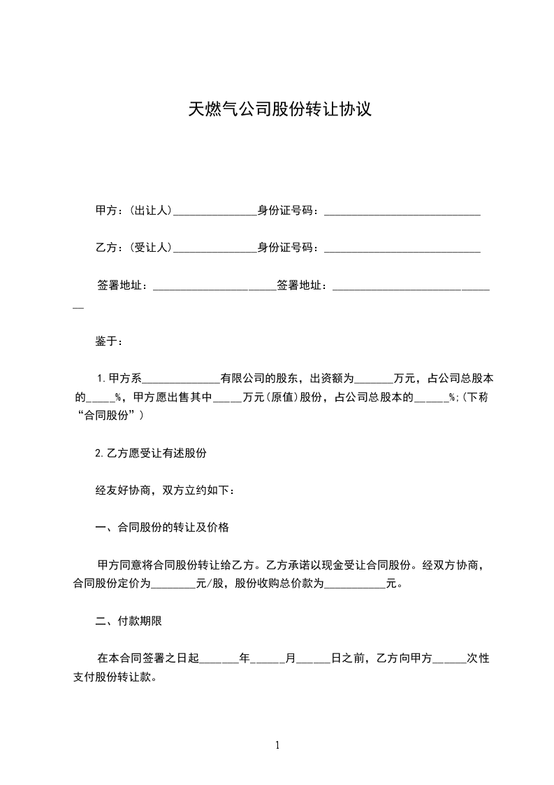 1.甲方系______________有限公司的股东,出资额为_______万元,占公司总股本的_____%,甲方愿出售其中_____万元(原值)股份,占公司总股本的______%;(下称“合同股份”)