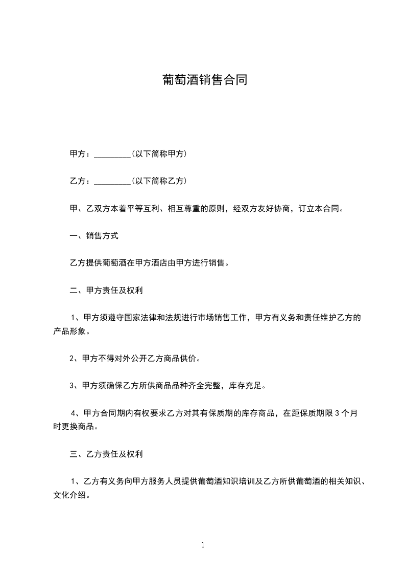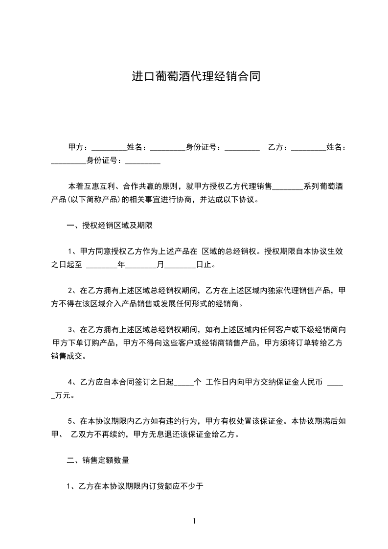 _____________________是澳洲葡萄酒 中国地区红酒经销总代理商,现因市场发展需要,经甲乙双方协商一致,甲方同意授权乙方作为甲方地区该产品的唯一代理商,销售地域为范围内。并约定以下条款互相遵守:
