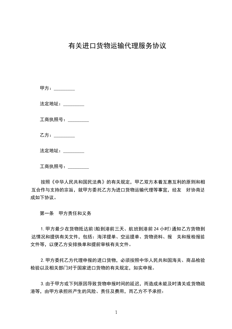 1.甲方负责及时向乙方提供进口货物报关、报验及提货所需的全套资料,以便乙方办理货物通关手续;