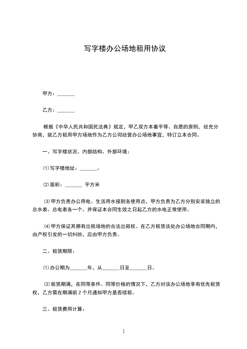 甲方将其所有的坐落在____________________的场地,含办公室,出租给乙方使用。