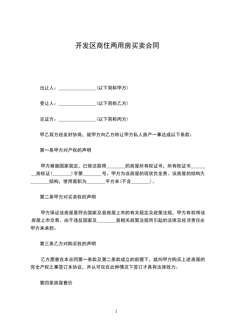 第二条甲方对买卖权的声明