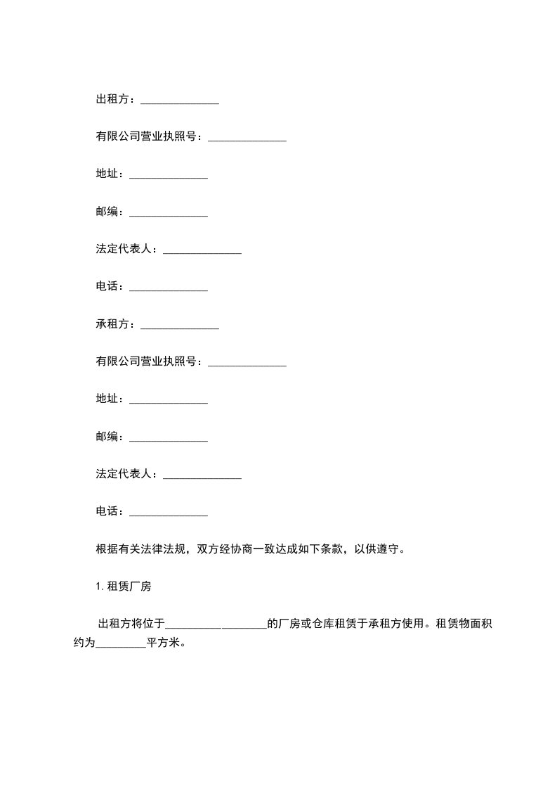 出租方将位于__________________的厂房或仓库租赁于承租方使用。租赁物面积约为_________平方米。