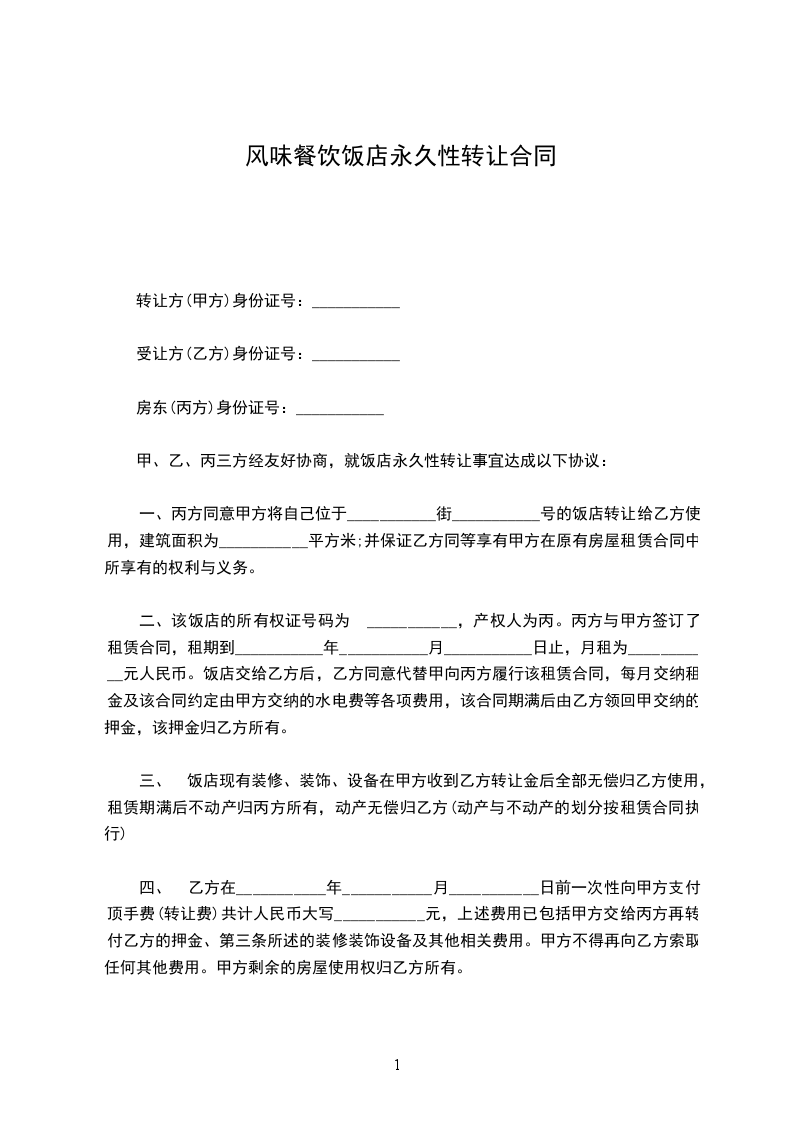 甲、乙、丙三方经友好协商,就饭店永久性转让事宜达成以下协议: