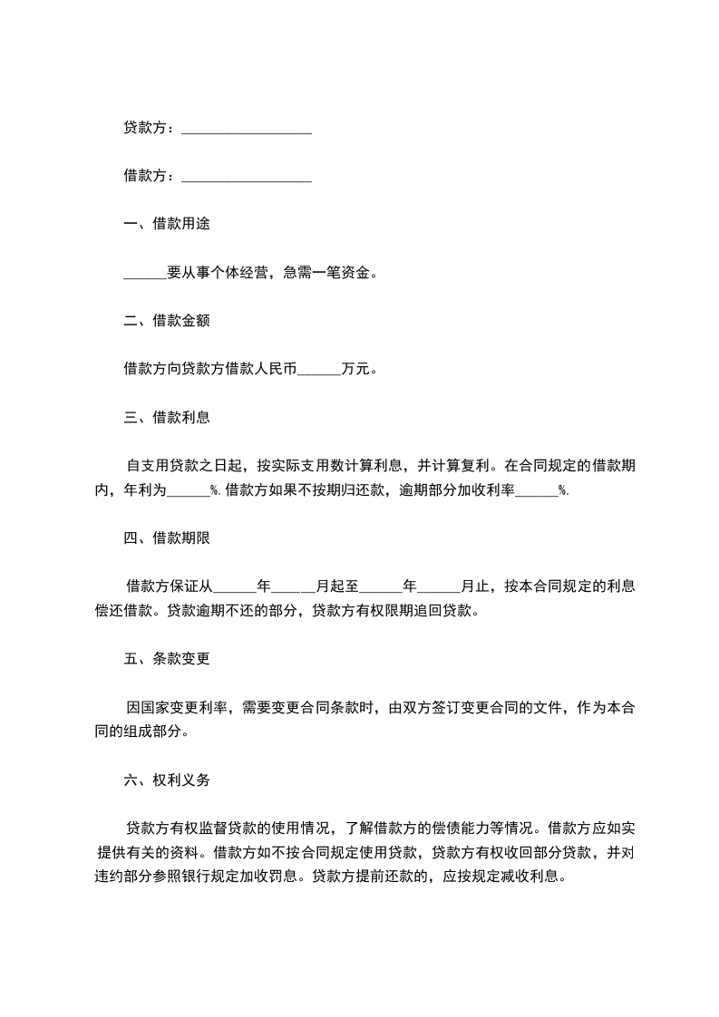 借款方向贷款方借款人民币______万元。