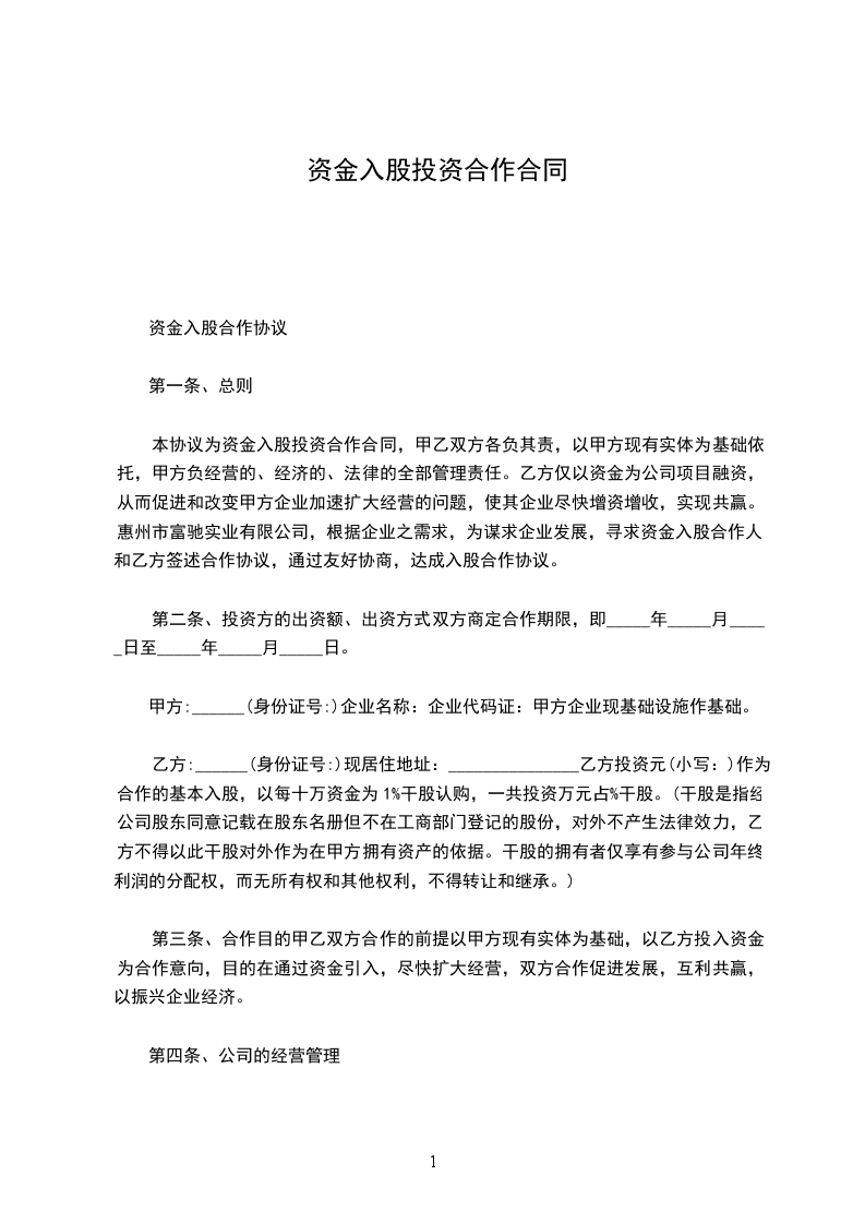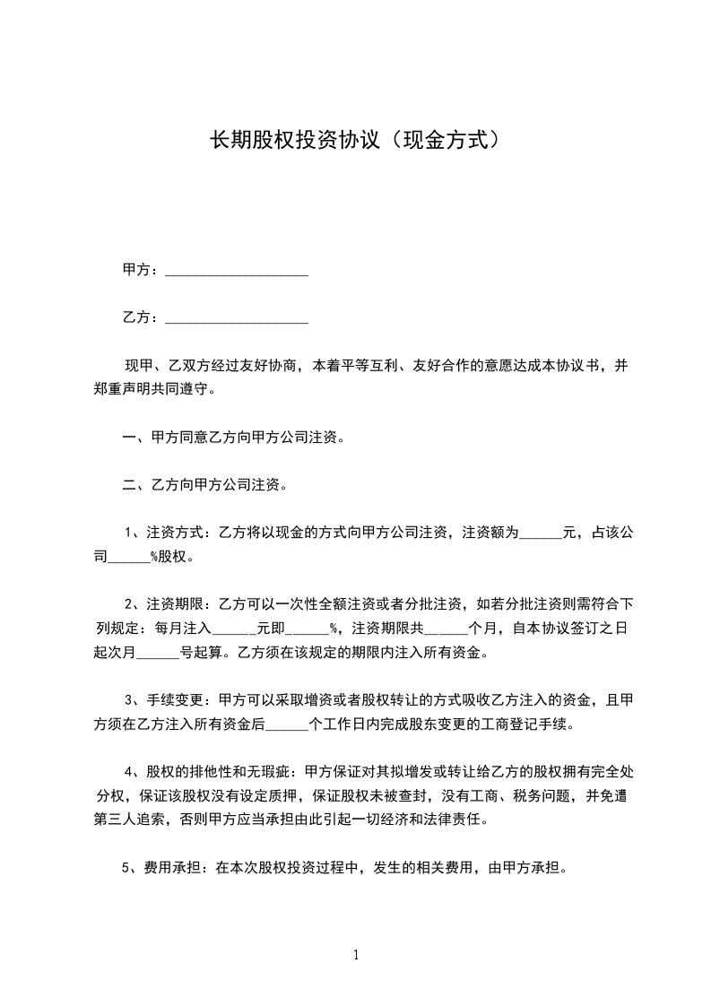 1、注资方式:乙方将以现金的方式向甲方公司注资,注资额为______元,占该公司______%股权。