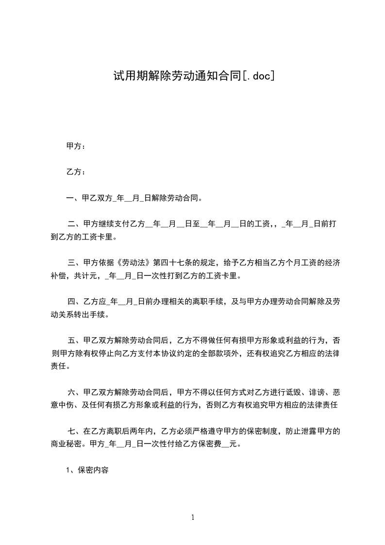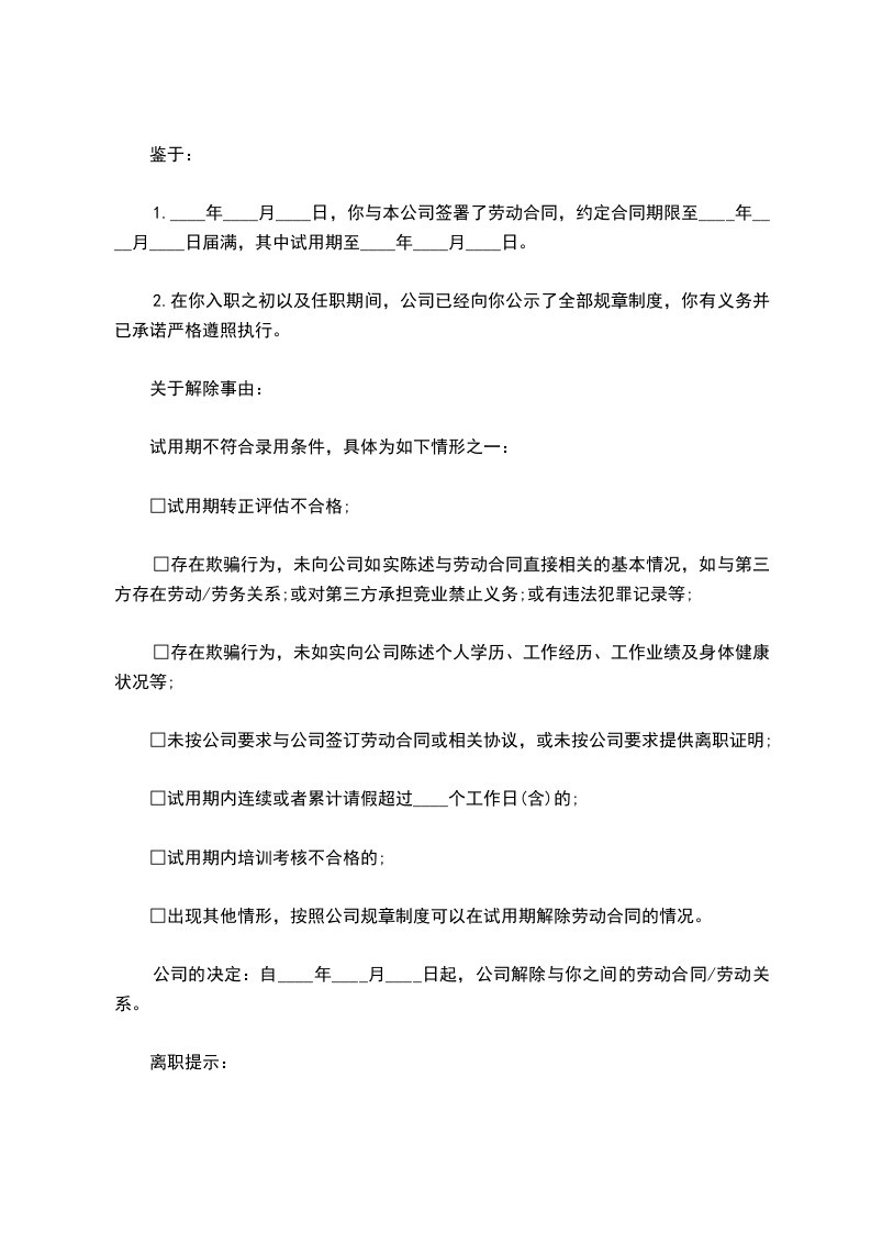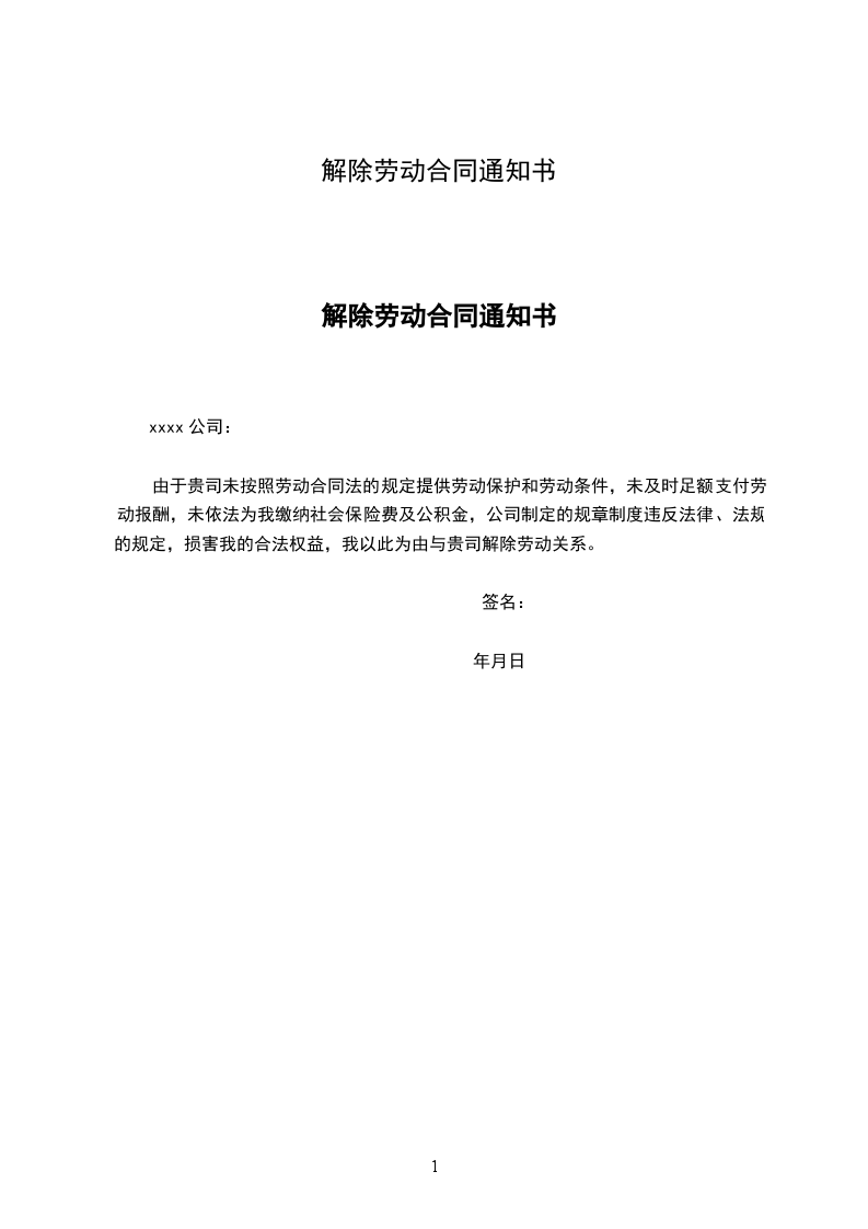 解除劳动合同通知书