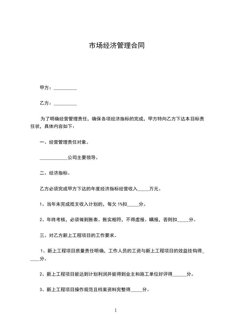为了明确经营管理责任,确保各项经济指标的完成,甲方特向乙方下达本目标责任状,具体内容如下: