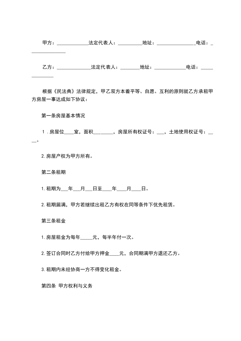 根据《民法典》法律规定,甲乙双方本着平等、自愿、互利的原则就乙方承租甲方房屋一事达成如下协议: