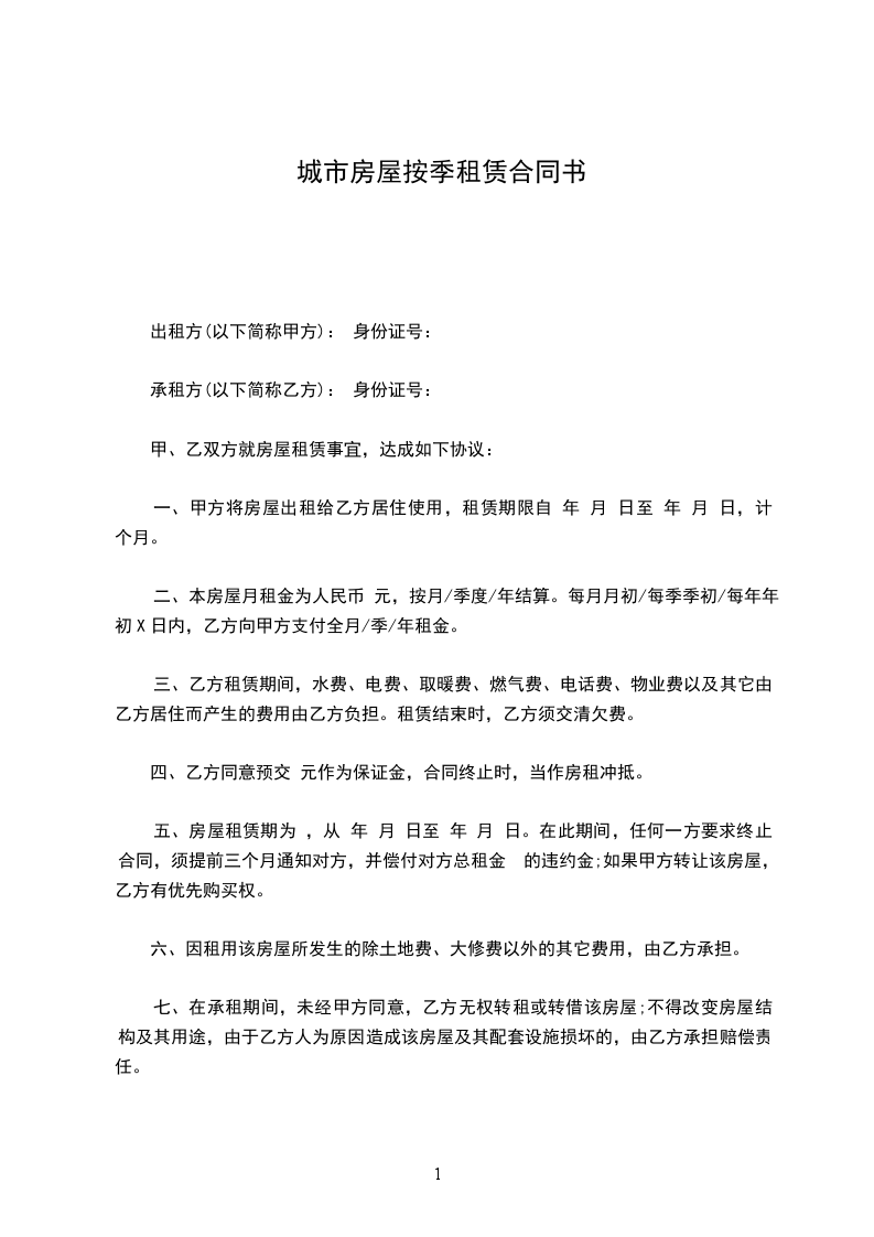 五、房屋租赁期为 ,从 年 月 日至 年 月 日。在此期间,任何一方要求终止合同,须提前三个月通知对方,并偿付对方总租金 的违约金;如果甲方转让该房屋,乙方有优先购买权。