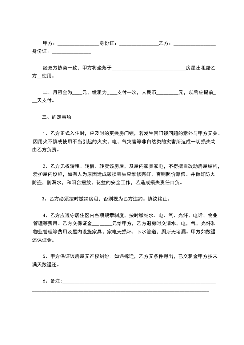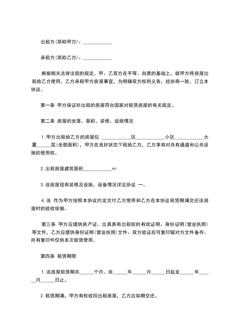 第二条房屋租期为壹年。从_____年_____月_____日至_____年_____月_____日。
