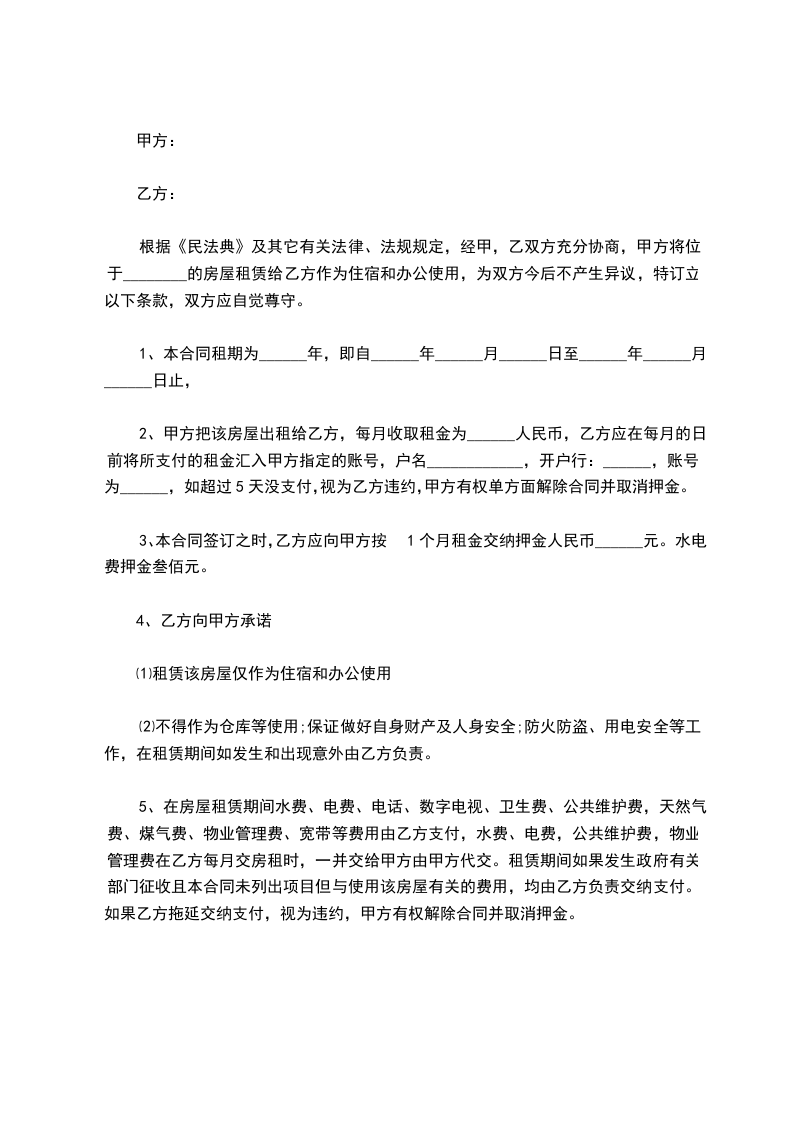 根据《中华人民共和国民法典》及相关法律法规的规定。甲乙双方在平等自愿基础上,就甲方将房屋出租给乙方使用,乙方承租甲方房屋事宜,为明确双方权利义务,经协商一致,订立本合同。